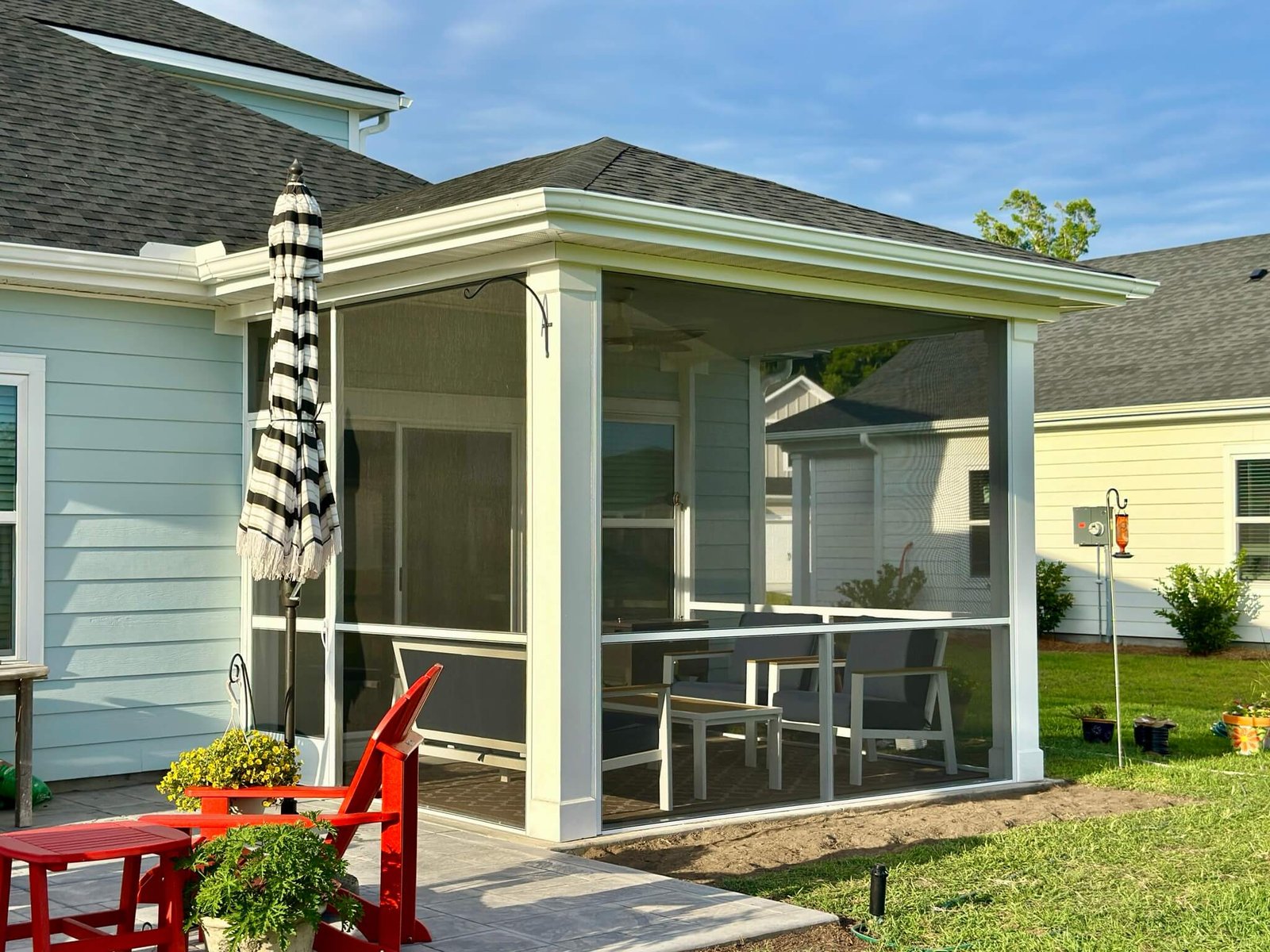Discover the perfect fusion of outdoor freedom and interior comfort with our custom screen ports. Unlike traditional screen rooms, our screen ports integrate seamlessly with your existing roofline, creating elegant outdoor living spaces that feel like natural extensions of your home. With 50+ screen ports completed in 2025, we’re Myrtle Beach’s proven experts in transforming outdoor spaces